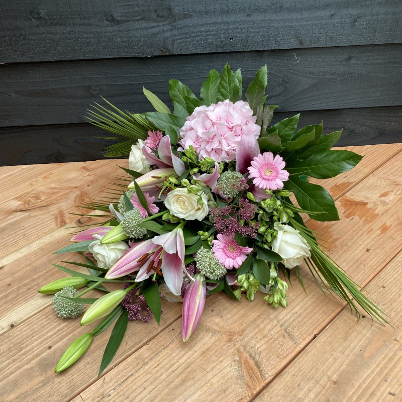 Een rouwarrangement is altijd maatwerk. Hoe eerder u uw bestelling plaatst des te beter kunnen wij het rouwarrangement hetzelfde maken als op de foto. Het is begrijpelijk als u vragen heeft voordat u iets wilt bestellen. Twijfel niet om ons even te bellen om het 1 en ander door te spreken. U bent ook altijd welkom bij ons in de winkel om speciale wensen te bespreken.
